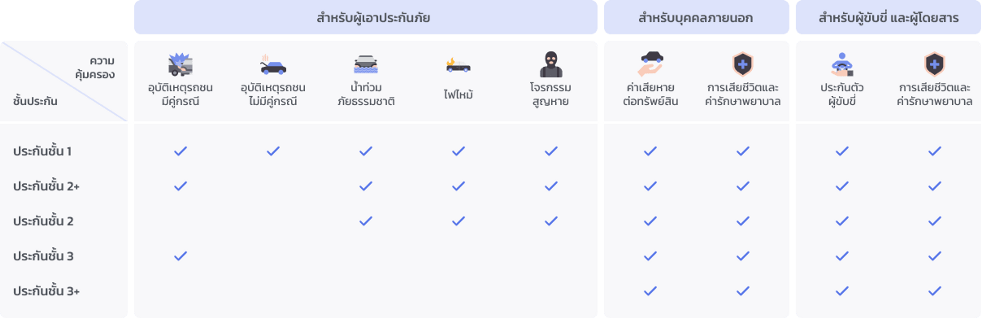 เปรียบเทียบชั้นประกันต่างๆ และเลือกที่เหมาะกับคุณ